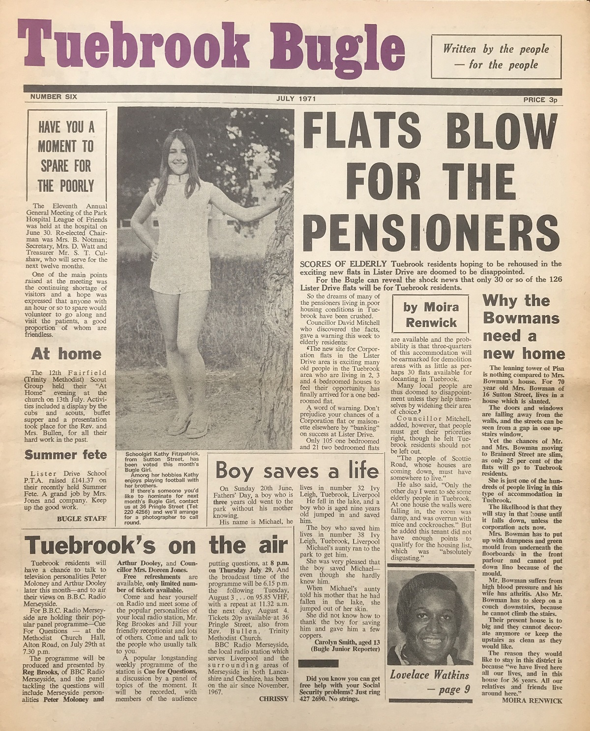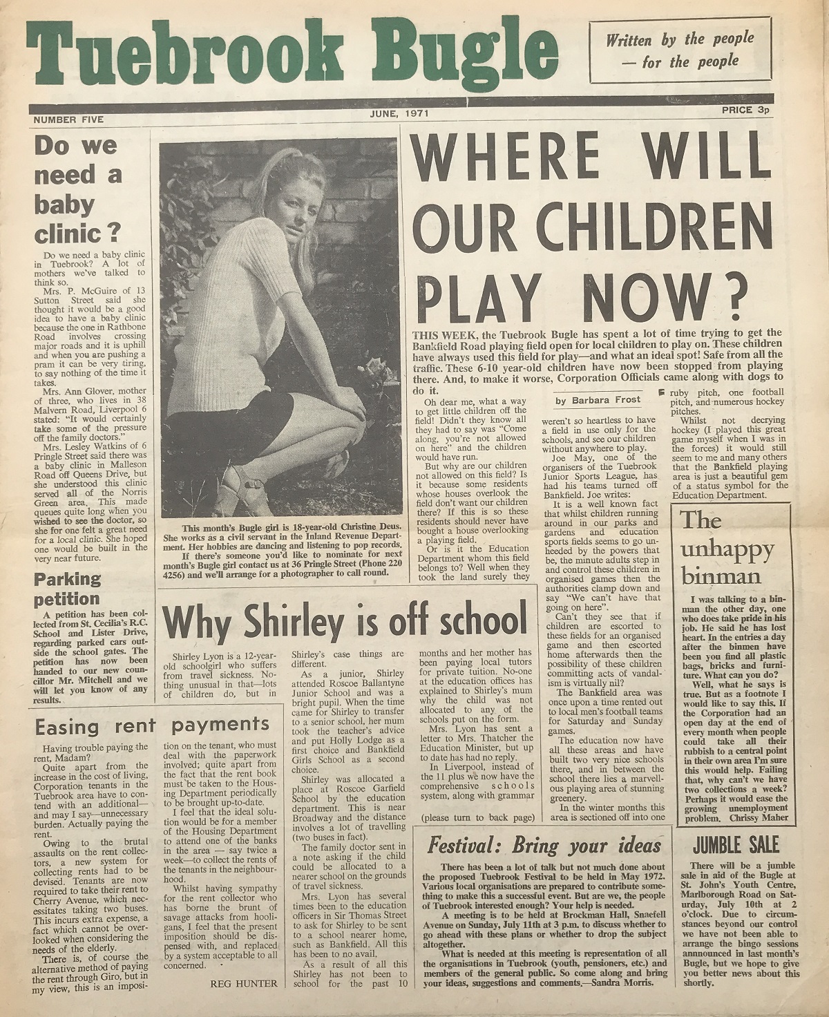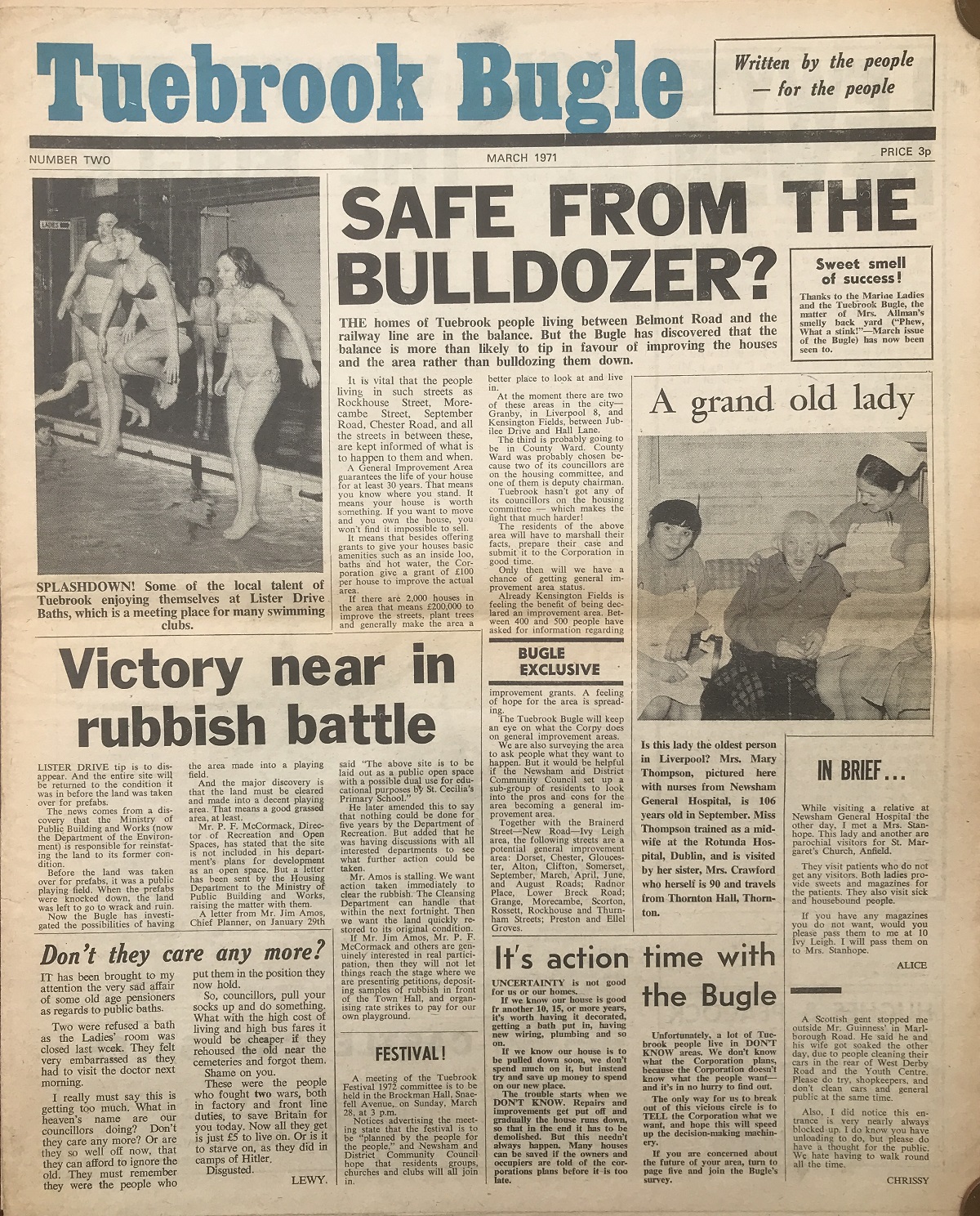 The Tuebrook Bugle was a community newspaper published in Liverpool during the 1970s under the slogan: “Written by the people for the people”. This online archive features six of its earliest issues.