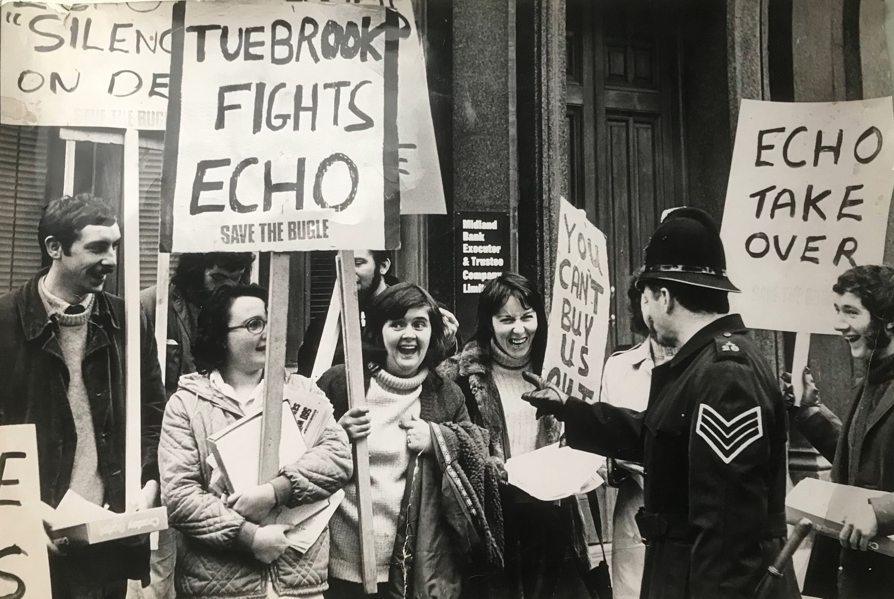 A “Save the Bugle” campaign ensued, with a demonstration outside the Daily Post Echo offices. A report in the Liverpool Free Press said: